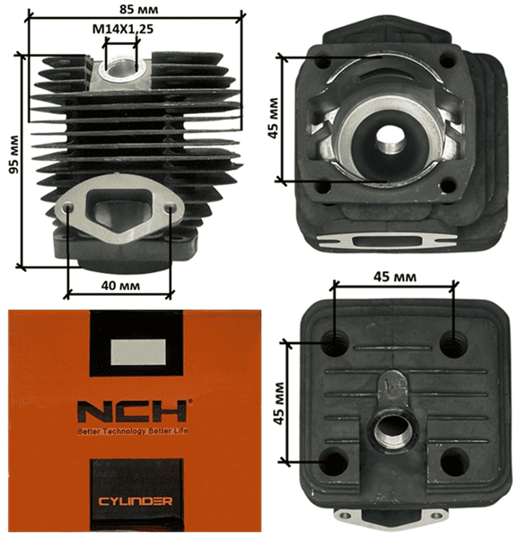 Grupul cilindru-piston (CPG) pentru drujba, model NCH, diametru 45 mm, capacitate 5200 mm³ – este o componentă cheie a motorului care transformă energia de ardere a amestecului combustibil-aer în forță mecanică. Pistonul se mișcă alternativ în interiorul cilindrului, transmițând forța prin bielă către arborele cotit, determinându-l să se rotească. În plus, grupul cilindru-piston este responsabil pentru o etanșare fiabilă: previne pătrunderea gazelor din camera de ardere în carter și nu permite uleiului să pătrundă în zona de ardere.