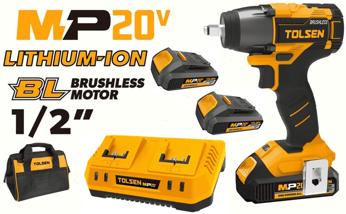 Аккумуляторный гайковёрт Tolsen MP20V 20V 1/2 Brushless — мощный ударный инструмент с бесщёточным двигателем для закручивания и сверления. Работает от платформы 20 В Tolsen, не требует подключения к сети. Максимальный крутящий момент до 300 Н·м позволяет эффективно работать с крепежом в гараже, на стройке и в бытовых условиях.